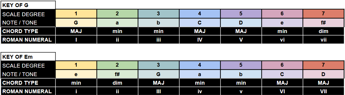 KEY OF G MAJOR : G , A , B , C , D , E , F# / KEY OF E MINOR : E , F# , G , A , B , C , D