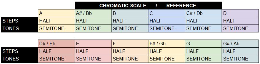 To create major and minor diatonic scales, we start with the chromatic scale, which consists of all 12 half-steps ( a.k.a semitones ) within an octave.