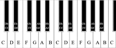 The White Keys represent "natural" notes, and the Black Keys represent sharps & flats.